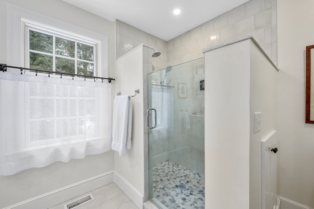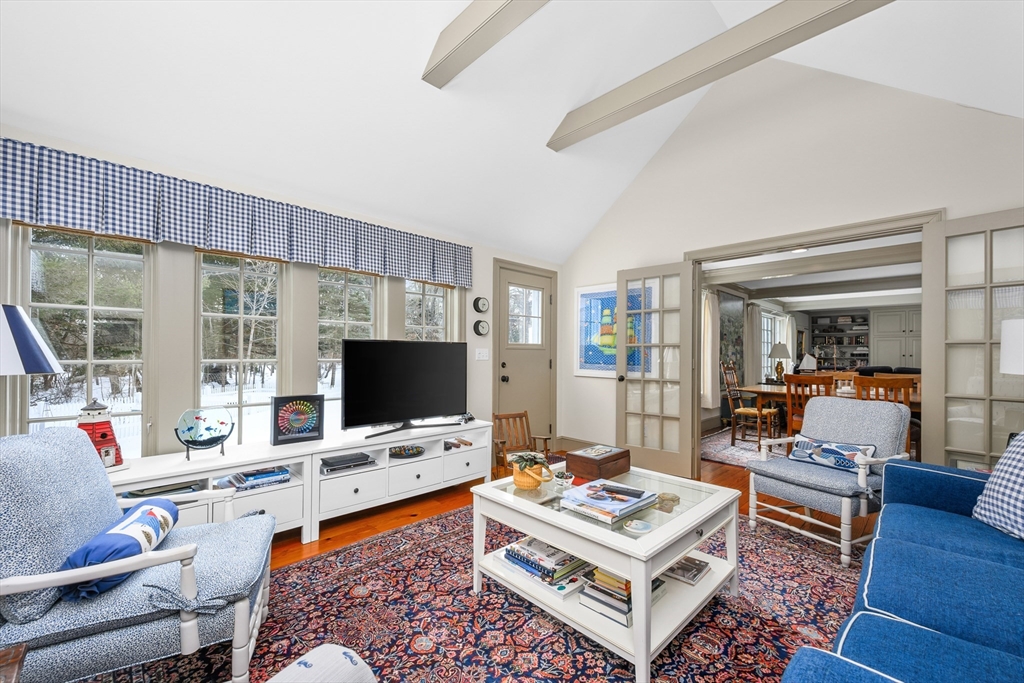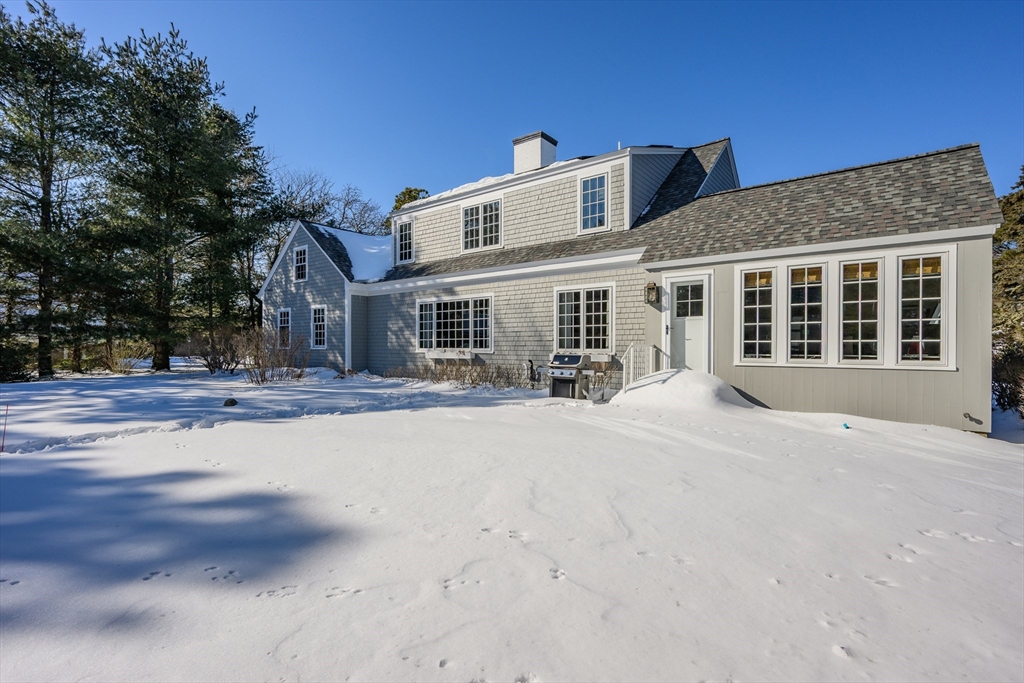 Nestled in desirable Sheep's Landing, with access to a private assoc. beach on Sheep Pond! The neighborhood boasts undergrnd utilities and lovely homes on large lots. Inside, southern pine floors flow thru most of the 1st floor, including living/dining room, kitchen, 2 bedrooms (BRs), and a year-rnd sunroom! Both 1st flr BRs feature private baths, and guest suite has an extra sitting rm/office! The main BR enjoys double closets and a spectacularly renovated bath with double sinks and a walk-in shower! The renovated kitchen is a chef's dream with quartz counters, double ovens, and a gas cooktop! 2 fireplaces--one gas, the other wood-burning. The 1st floor also includes a laundry room, half bath and garage access. Upstairs are 2 more BRs, a full bath, attic, cedar closet, and a bonus room ideal for exercise or hobbies. Solar panels are owned! Whole House generator! Set on a very private lot with a large back yard and wooded area behind! Enjoy the video. Buyers/agents to verify details.