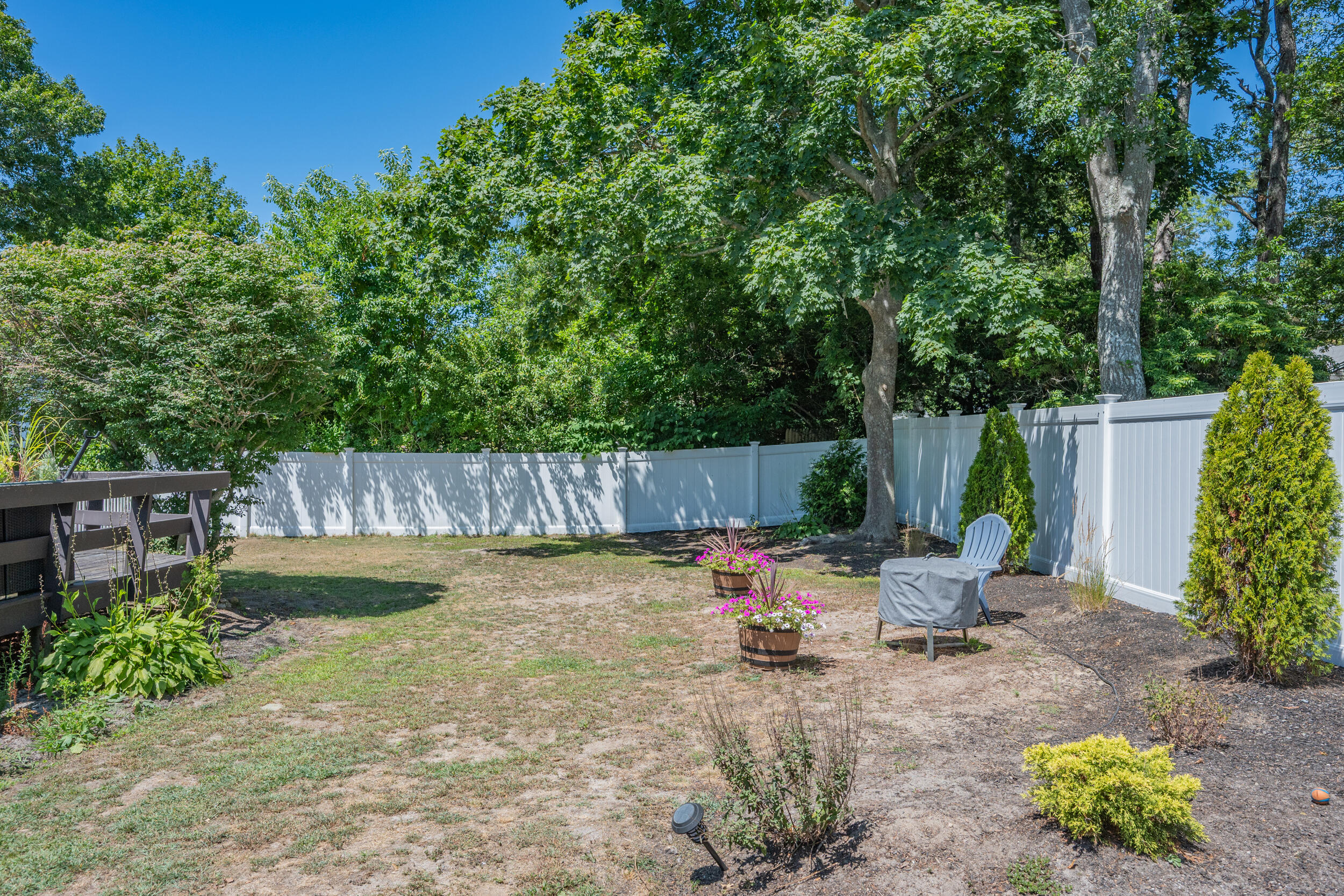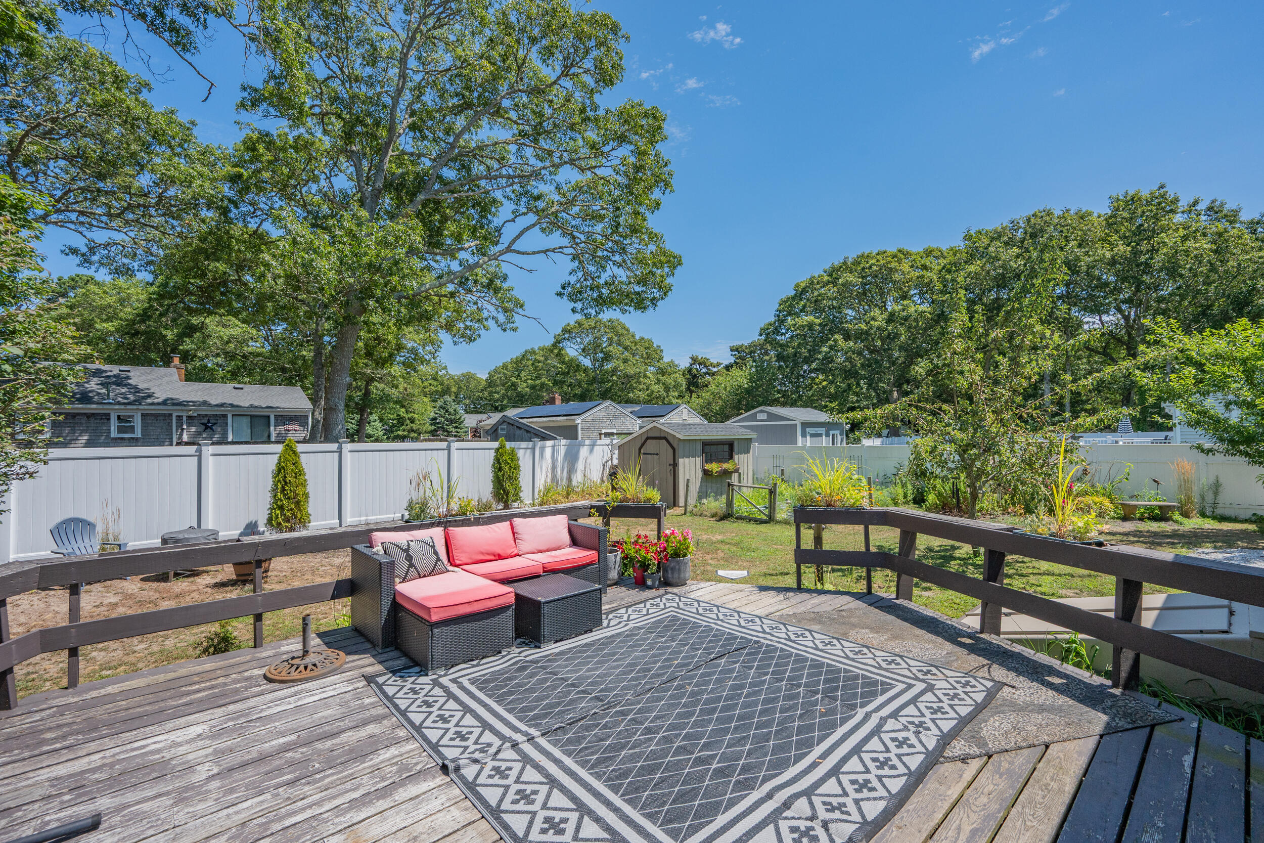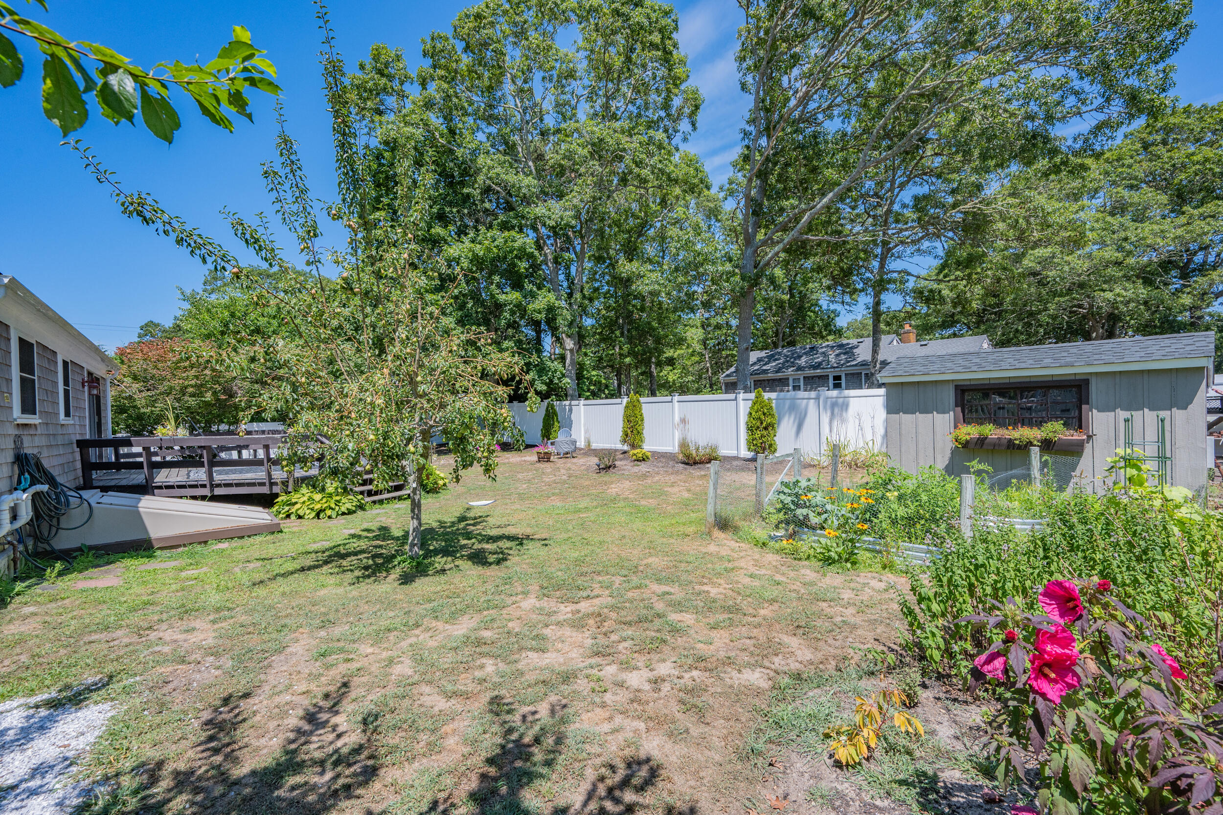 Sweet ranch-style home offering 2 bedrooms and a renovated bathroom! The oak floors in the living room and bedrooms add warmth and elegance, while the vinyl plank floors in the kitchen and bathroom provide durability and style. The home boasts other modern features including central AC, on-demand gas hot water system, and a brand-new dryer. The kitchen is also equipped with appliances 2 yrs young. Enjoy time outdoors on the spacious deck surrounded by a large, private backyard with vinyl fencing, perfect for games, gatherings or quiet reflection. Cultivate your green thumb in the fenced-in vegetable garden and enjoy fresh fruit from your own pear and plum trees! For storage, you'll find a full basement with interior access and a new bulkhead door. Additional upgrades include Harvey replacement windows throughout, an Andersen slider, and a storm door. An ideal retreat or year-round home near scenic cranberry bog trails in the neighborhood and just 2 miles to Sea Gull Beach. Buyers/agents to confirm all details.