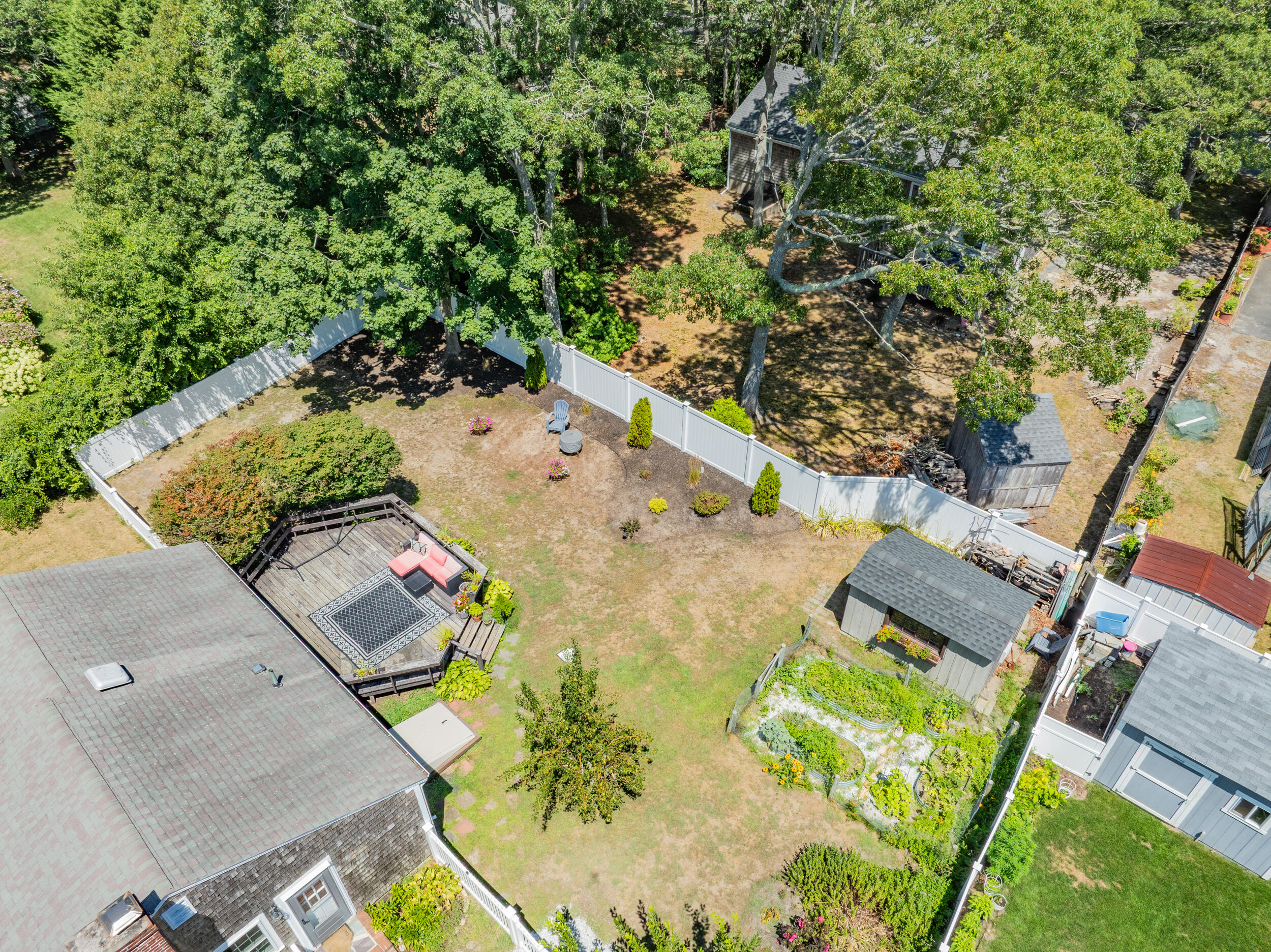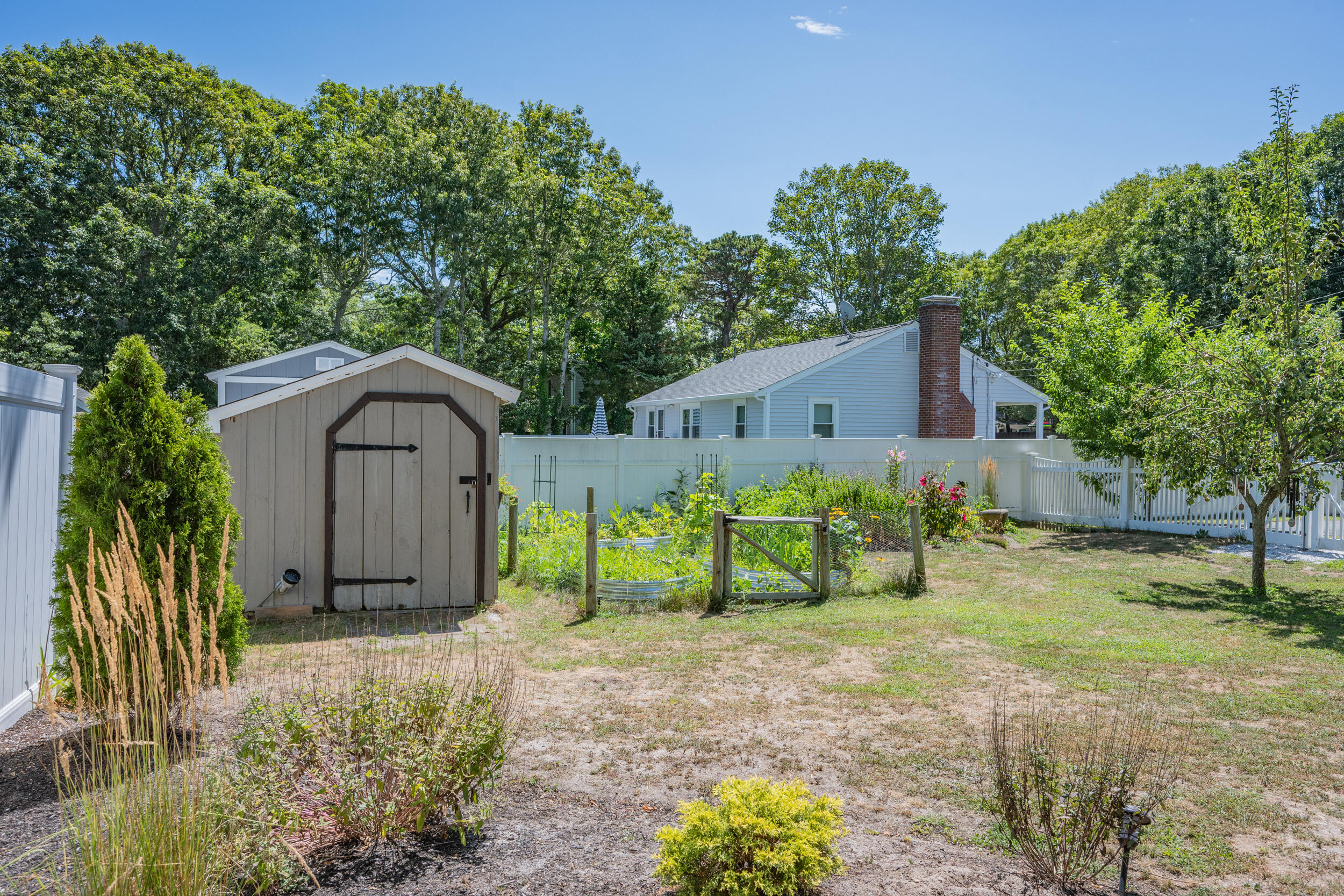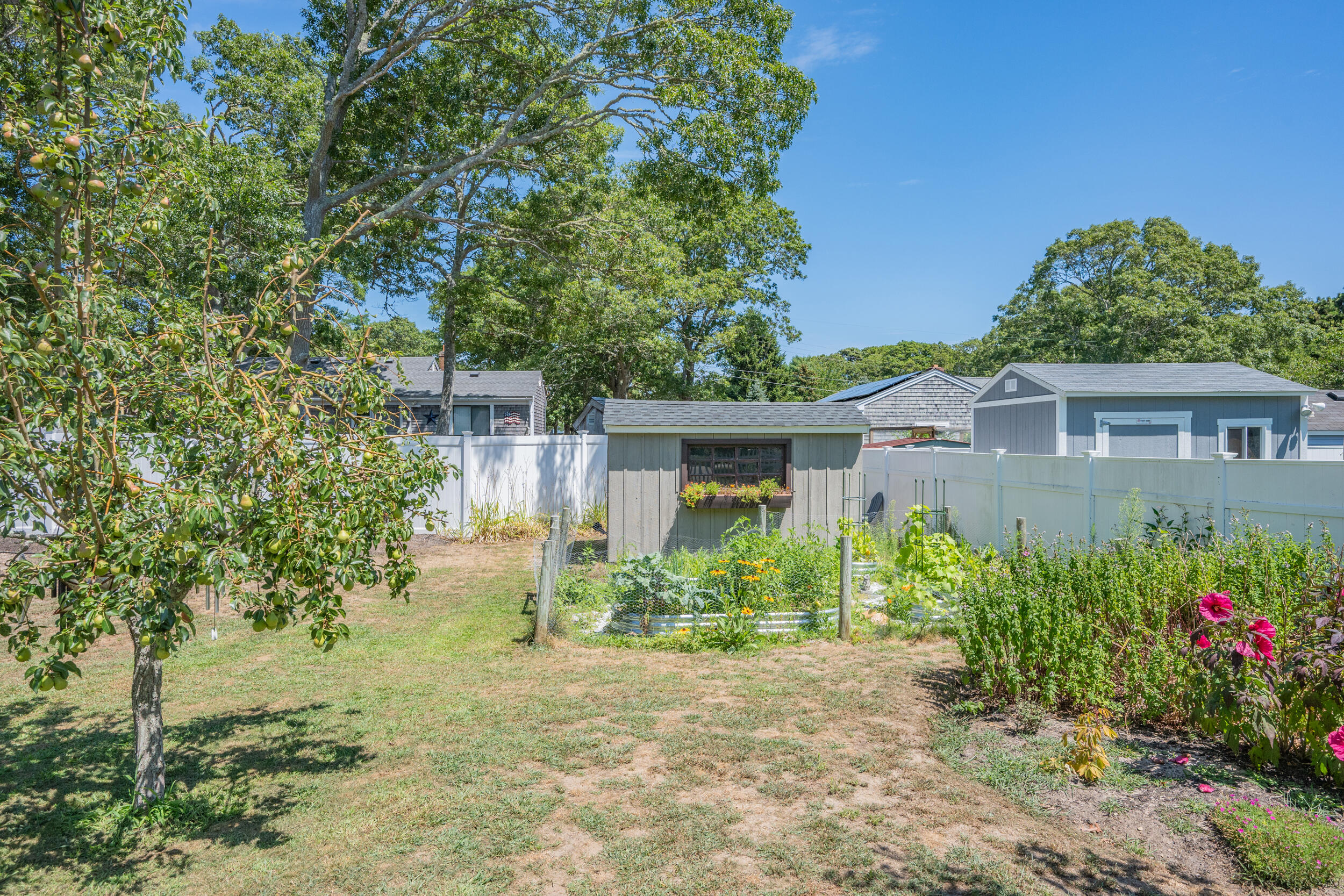 Sweet ranch-style home offering 2 bedrooms and a renovated bathroom! The oak floors in the living room and bedrooms add warmth and elegance, while the vinyl plank floors in the kitchen and bathroom provide durability and style. The home boasts other modern features including central AC, on-demand gas hot water system, and a brand-new dryer. The kitchen is also equipped with appliances 2 yrs young. Enjoy time outdoors on the spacious deck surrounded by a large, private backyard with vinyl fencing, perfect for games, gatherings or quiet reflection. Cultivate your green thumb in the fenced-in vegetable garden and enjoy fresh fruit from your own pear and plum trees! For storage, you'll find a full basement with interior access and a new bulkhead door. Additional upgrades include Harvey replacement windows throughout, an Andersen slider, and a storm door. An ideal retreat or year-round home near scenic cranberry bog trails in the neighborhood and just 2 miles to Sea Gull Beach. Buyers/agents to confirm all details.